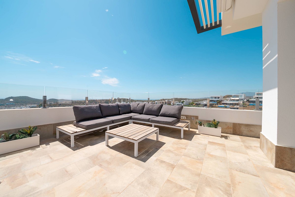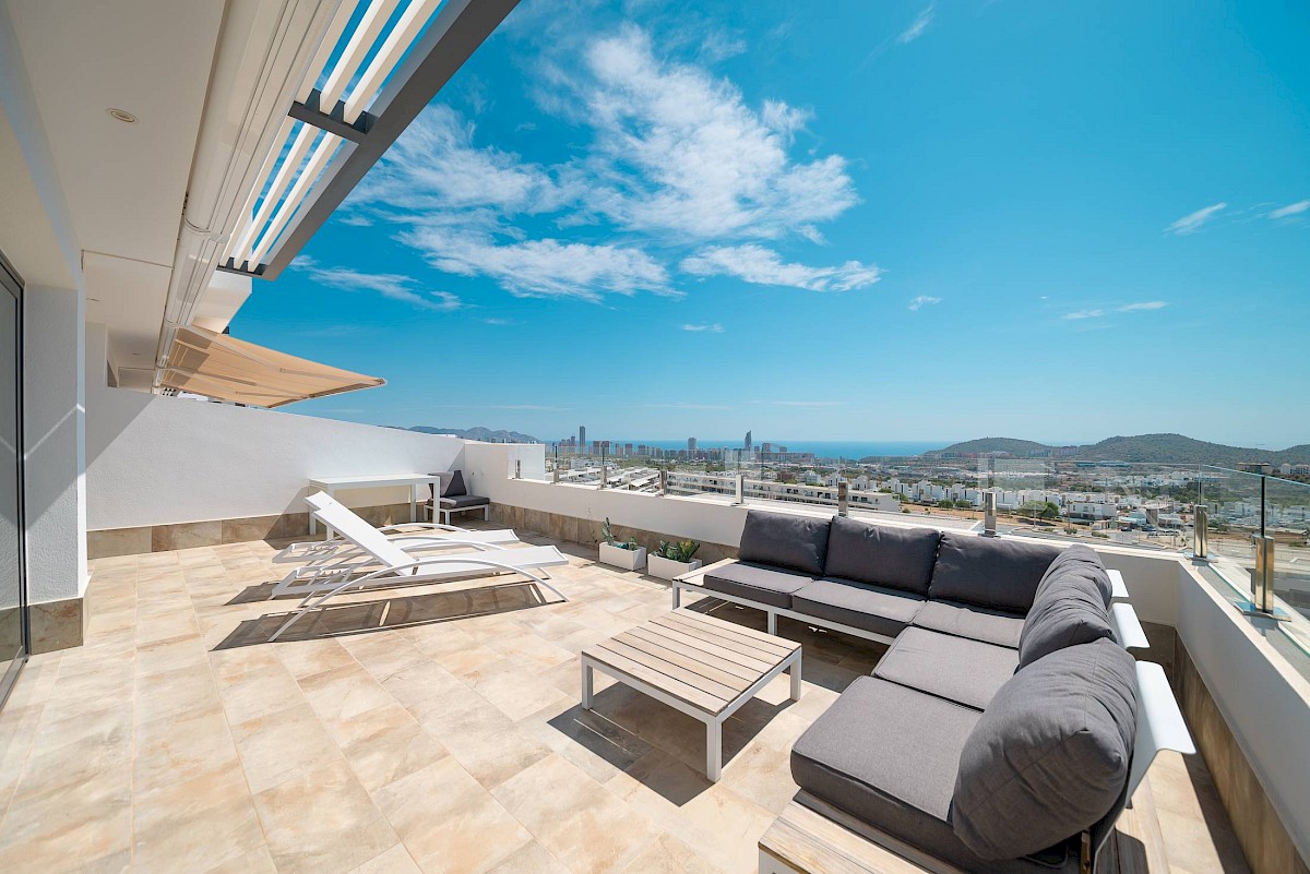 Vanuit het appartement geniet u van een adembenemend panoramisch uitzicht op de Middellandse Zee en de skyline van Benidorm. De woning wordt volledig gemeubileerd verkocht, waardoor u direct kunt intrekken en zorgeloos kunt genieten.